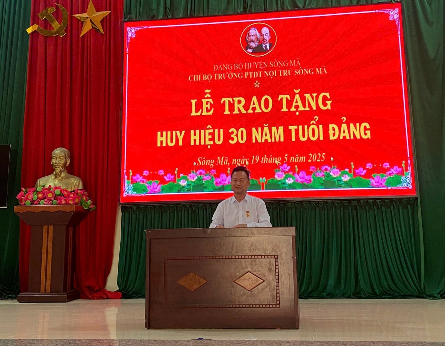 PTDTNT THCS và THPT Sông Mã, người thầy vừa vinh dự nhận Huy hiệu 30 năm tuổi Đảng.